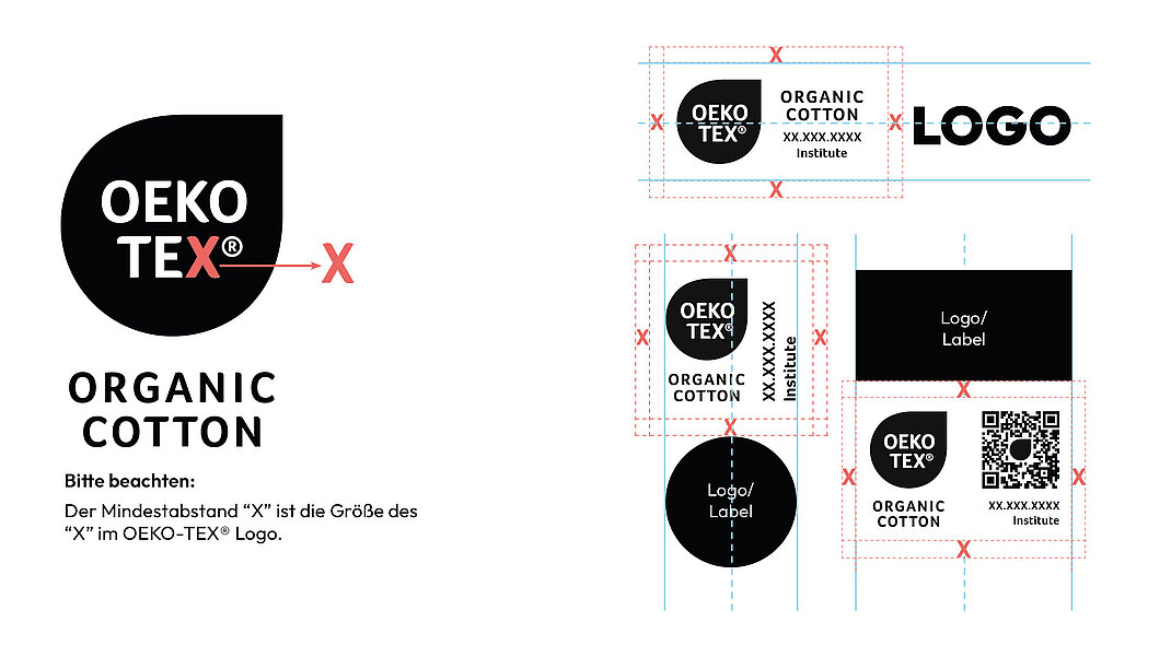 Der Mindestabstand “X” ist die Größe des «X» im OEKO-TEX® Logo.