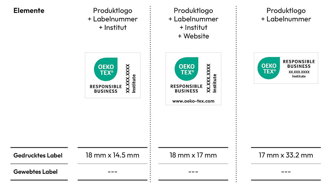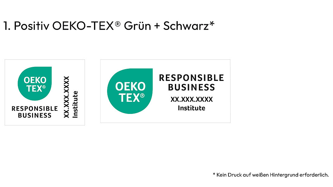 Jede Layout-Version steht über den Label Editor im Kundenportal myOEKO-TEX® zum Download bereit. Jede andere Farbvariante muss bei OEKO-TEX® zur Genehmigung eingereicht werden.