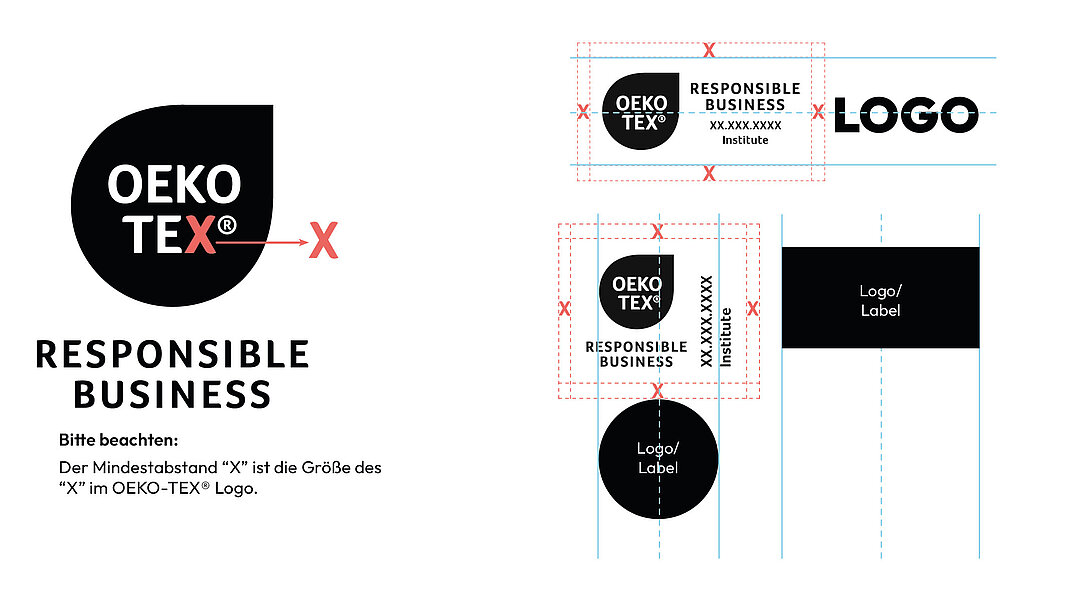 Der Mindestabstand “X” ist die Größe des «X» im OEKO-TEX® Logo.