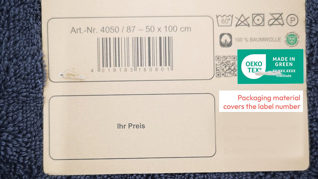 If a product is advertised as OEKO-TEX® MADE IN GREEN labelled, the physical product must be marked with the valid corresponding label.