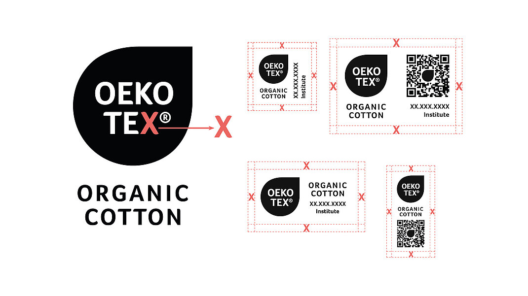 Minimum safe zone 'X' is the size of the 'X' in the OEKO-TEX® Logo.