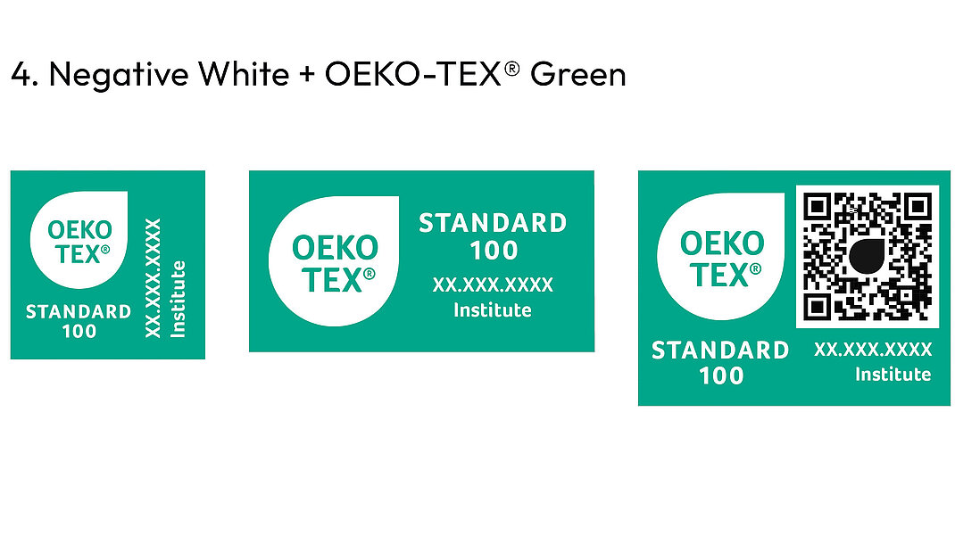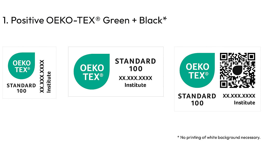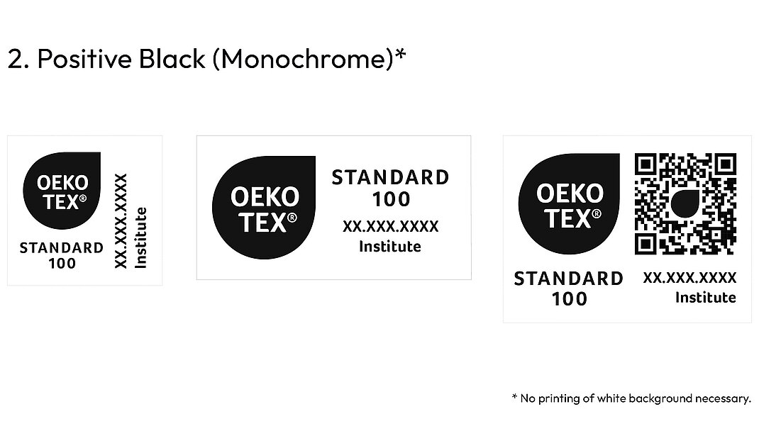Every label layout can be downloaded from myOEKO-TEX® by the label owner. Any colour variations, including monochrome versions, not shown here, must be submitted to OEKO-TEX® for approval.